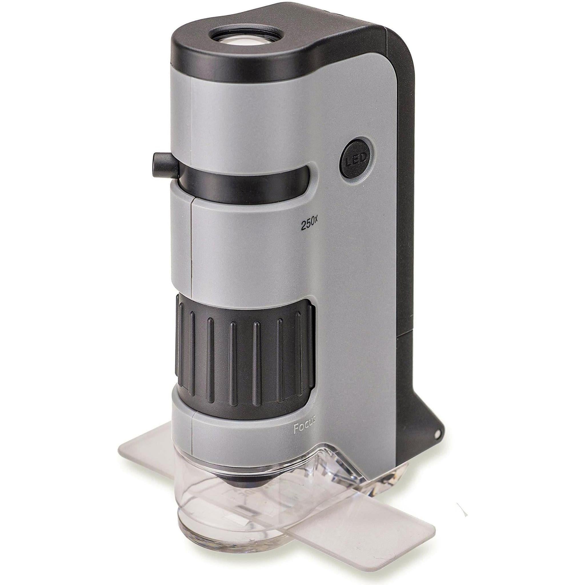 The MicroFlip MP-250 100-250x Pocket Microscope from Carson is a powerful magnifying tool with reliable LED illumination that can be used at home or in the field. It is compact and portable with an adjustable magnification between 100x and 250x to reveal the details normally hidden from sight.