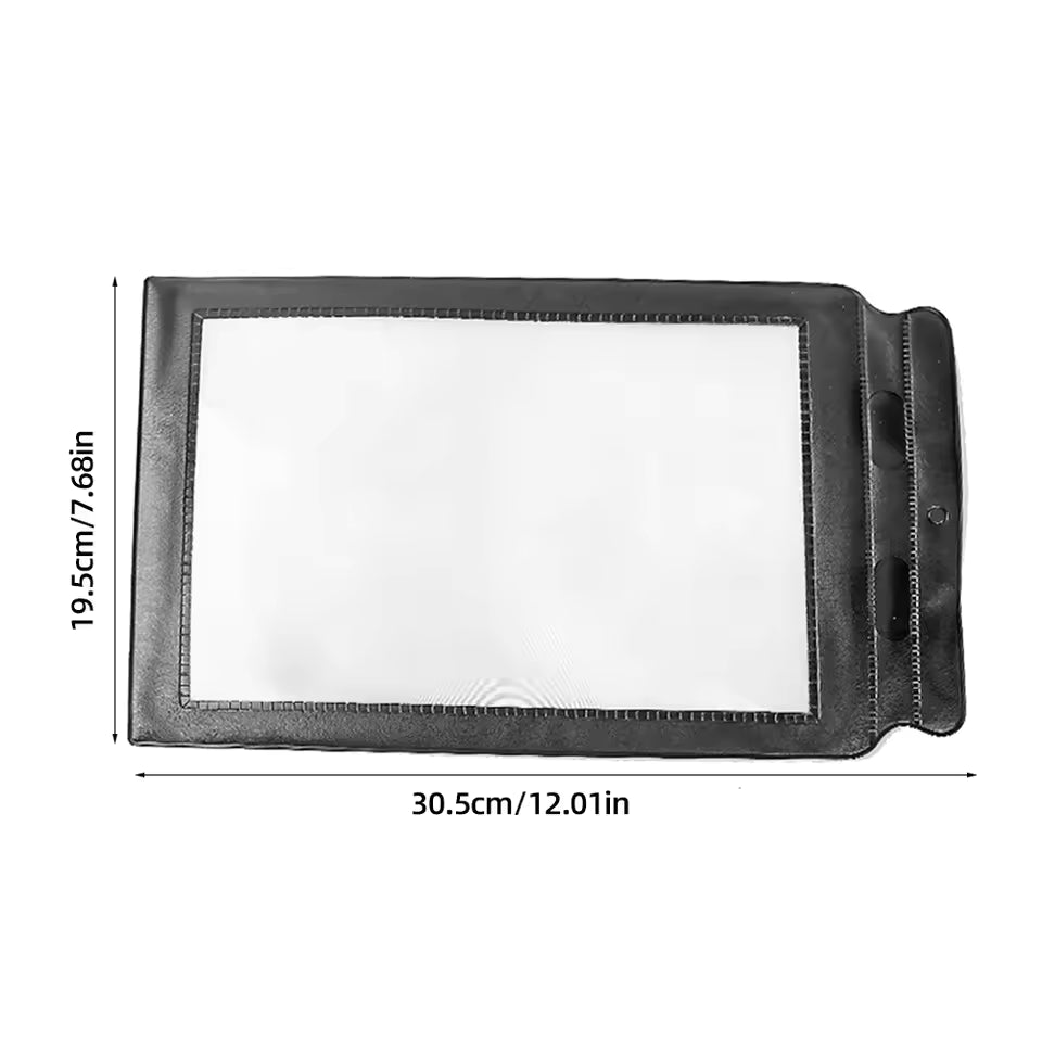Enhanced Reading Experience: This page magnifier features a full A4 page size and rectangular shape, making it easier to read the entire page without needing to use a separate magnifier or move around. The larger size allows for more content to be viewed at once, eliminating the need for constant adjustments. 2. Multi-purpose Design and Practicality: Not only does this page magnifying glass serve as a powerful tool for enlarging text and images, but it also doubles as a convenient bookmark. With this feature, you can easily mark your place in a book while having the magnifier readily available for quick reference. 3. Versatile and Flexible Use:Designed with a flexible lens, this bookmark flat magnifier is perfect for reading books, maps, and newspapers. Its flexibility allows for easy maneuverability, ensuring optimal placement for clear and detailed viewing. Whether you're reading fine print or examining intricate details, this magnifying glass provides the necessary clarity without straining your eyes. 4. Lightweight and Portable Convenience:Thanks to its lightweight construction, this magnifying lens sheet is ideal for extended reading sessions. It reduces hand fatigue, enabling you to enjoy prolonged periods of reading comfortably. Additionally, its portability means you can easily carry it with you wherever you go, ensuring convenient usage anytime, anywhere. 5. Specifically Designed for Low Vision Individuals: This large full page magnify len is equipped with a magnifying Fresnel lens specially designed to cater to the needs of people with low vision, the elderly, hobbyists, and professionals. The specialized lens offers enhanced magnification power, making it easier for individuals with visual impairments to read and view details more clearly.