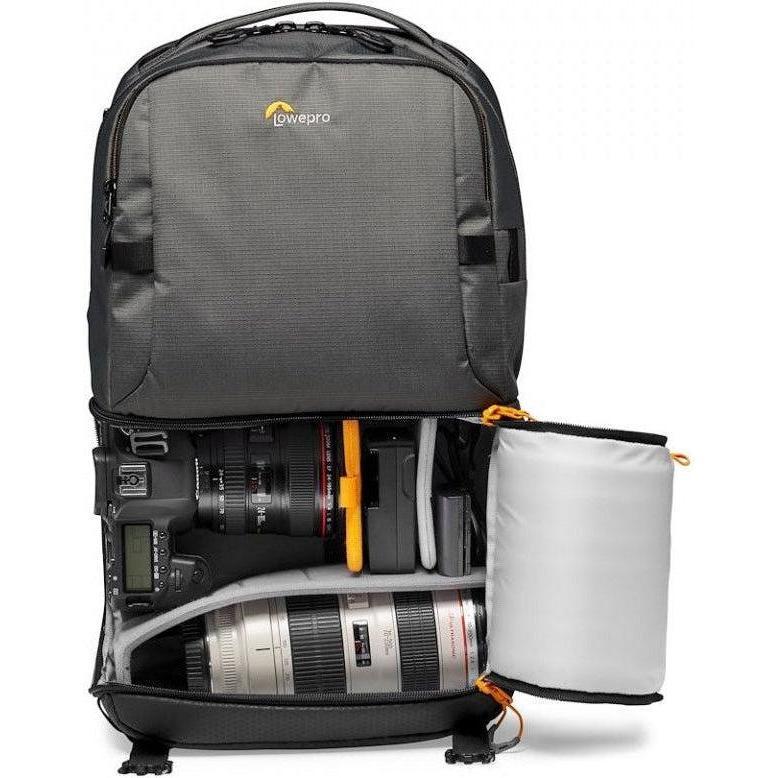 SPACE FOR PERSONAL GEAR: The top compartment is the perfect place to stash quick-grab all your personal items such as headphones portable hard drive smartphones etc. CRADLEFIT : Padded and suspended compartment dedicated to laptop and tablet protection. COATED FABRIC & RAINCOVER FAST AND EASY ACCESS: QuickDoor allows two access modes: a quick side-entry and full access to the main camera compartment for set-up or to work out of the bag.