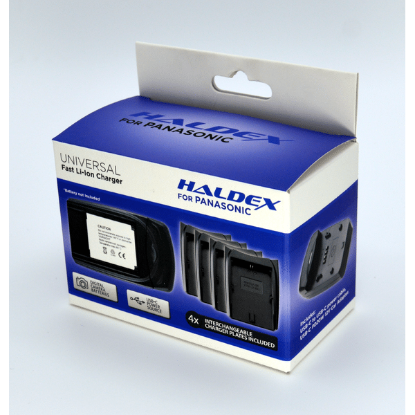 Haldex 700 Series FOR PANASONIC Li-Ion Charger With USB-C Input and Included PD20W Car Adaptor Haldex 700 Series FOR PANSCONIC Li-Ion Charger with USB-C Input is a multi-purpose charger for most Li-Ion digital camera batteries. Includes; Plates to suit: Panasonic BLC12, BLF19, BLJ31 and BLK22 USB-C Input Power cable USB-C to USB-C Dual USB Car Charger with QC3.0 USB and PD20W USB-C ports Easy to use Compatible with Interchangeable battery plates for digital cameras of a specified brand.