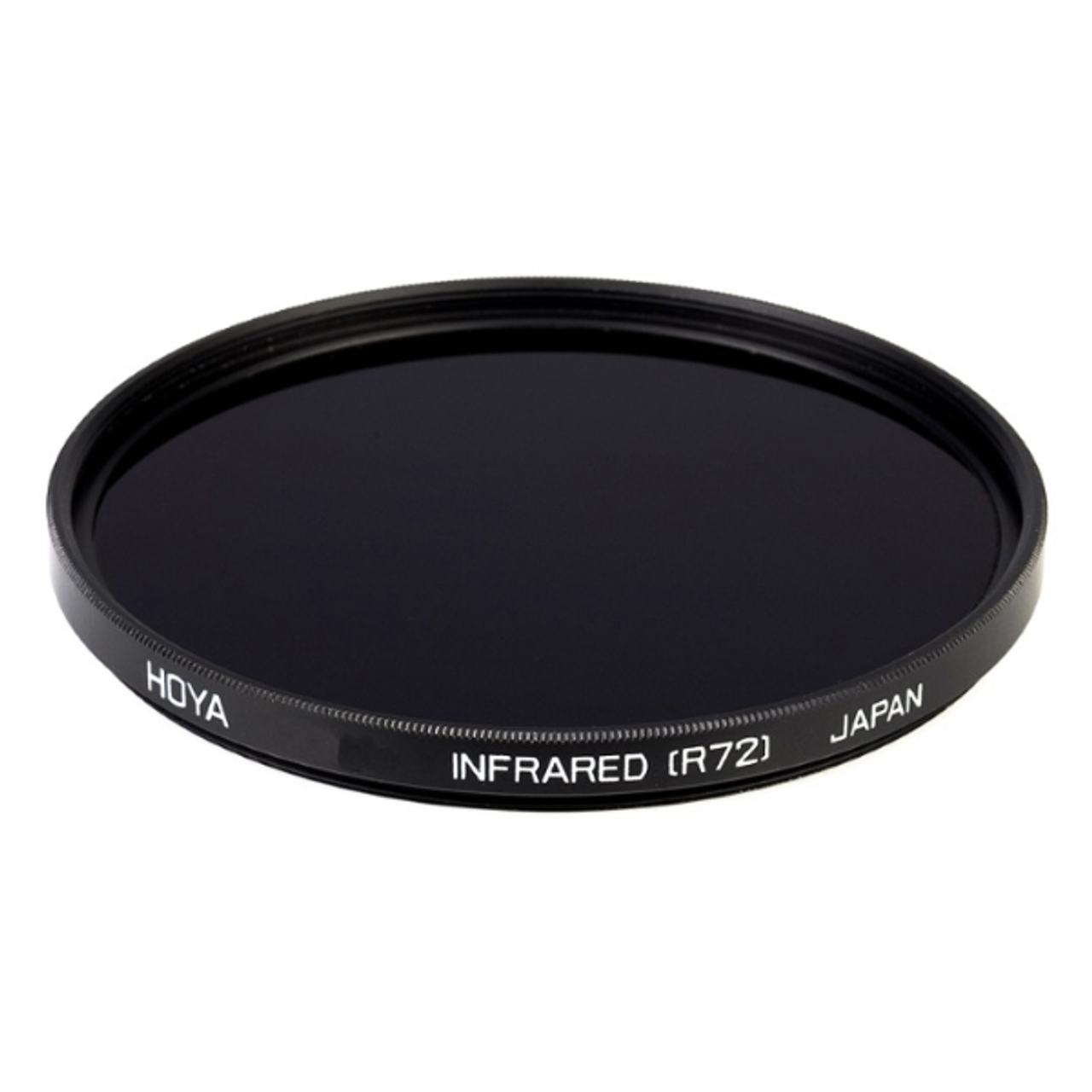 he Hoya R72 Infrared Filters are specifically designed for infrared photography with digital cameras and infrared film. Infrared light starts in the high-red area of the visible spectrum at around 750nm and goes up beyond 1000nm. This light is not visible to the naked eye. Looking through the R72 filter it looks almost opaque because the filter is only passing light from the very high red edge of the visible spectrum and infrared light. Infrared photography yields very interesting, sometimes stunning, and creative result as object in a scene reflect infrared light differently than normal light. Due to the nature of infrared light, filter factor and exposure compensation vary widely from visible light and depends largely on lighting conditions. -Works well with digital cameras, especially mirrorless cameras or DSLRS with no IR blocking filter in front of the sensor. (Please check your camera's owners manual) -Only passes light at 720nm (high-red) and above. Gives more predictable results than filter that only pass Infrared light above 850 or 900nm. -The Hoya R72 is constructed using high-quality optical glass from Hoya mounted in a precision milled aluminum frame that provides rigidity. -Consistent quality, made in Japan -Can be paired with colored black and white contrast filters such as the R25 (red), K2 (yellow), O (orange) or other color filters to change the color rendition or contrast effects.