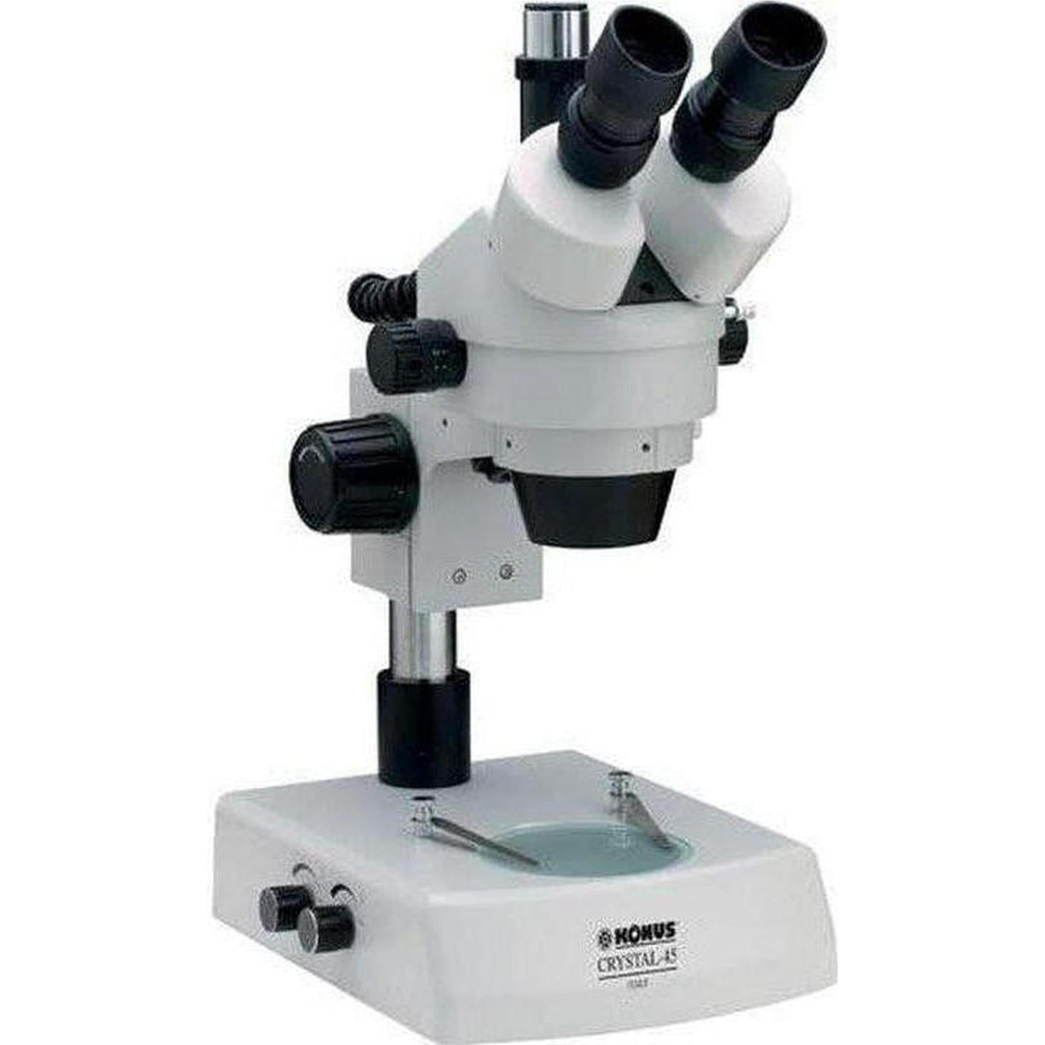 The Konus Crystal 7x- 45x Stereoscopical Microscope with trinocular head, supplied with two WF (Wide Field) 10x eyepieces and zoom objective from 0.7x to 4.5x (gives 7x- 45x magnification).