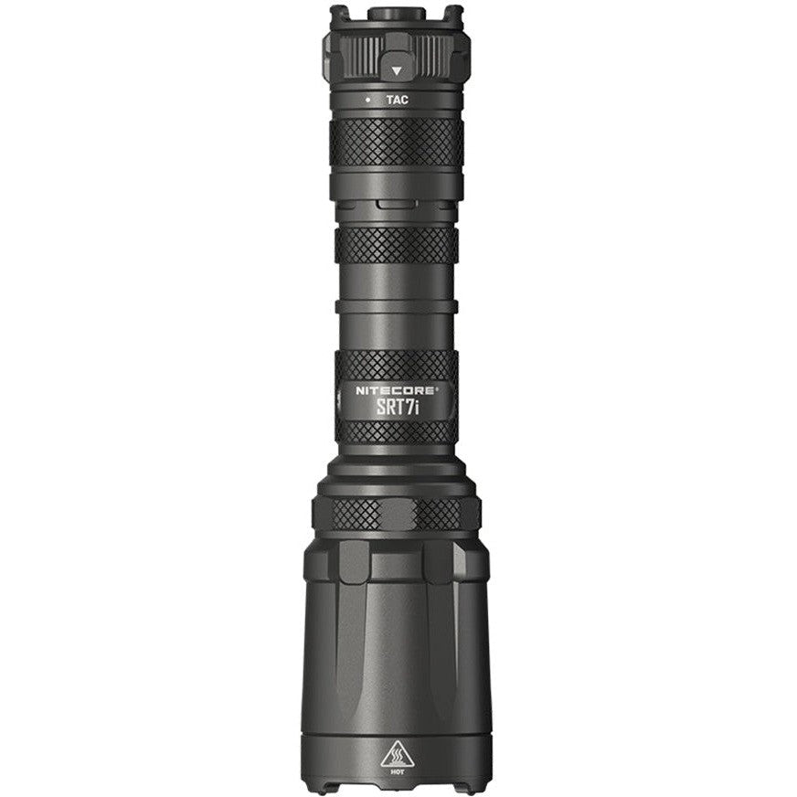 • LONG THROW TACTICAL FLASHLIGHT - The Nitecore SRT7i emits up to 3000 lumen beam with a throw of over 634 yards. • USB-C RECHARGEABLE - fast charging waterproof USB-C port, max runtime of over 3 hours on turbo and 800 hours on ultralow. A battery status indicator reminds you it’s time to recharge. • SMART SELECTOR RING- supports single hand operation with stepless brightness adjustment from 1 to 3000 lumen and quick access to the strobe and turbo. Guarded tail cap for tail stand capability. • READY FOR ACTION - Rated IP68 waterproof to use safely in any climate, Impact resistant up to 2 meters. A stainless steel bezel with three silicone nitrided inlays for glass breaking.