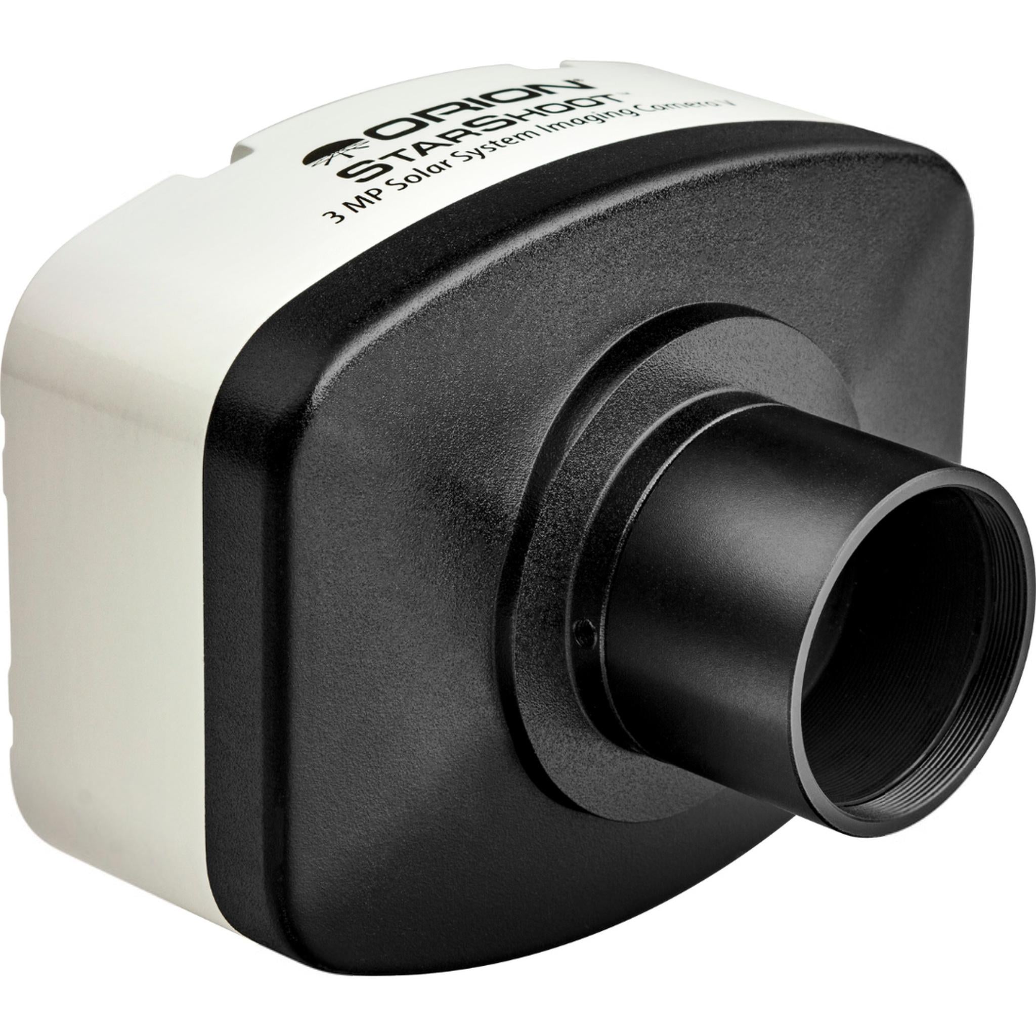The Orion StarShoot 3mp Solar System V imaging camera makes capturing lunar and planetary detail with your telescope fun and easy, thanks to the simple software and easy controls. Its 3mp resolution comes courtesy of the Micron MT9T001 1/2 inch format CMOS chip. 2040x1528 pixels and each of those pixels is a mere 3.2µm in size for fantastic resolution in 24-bit color. And because the 8-bit output is progressive scan, every pixel is used for each exposure. By stacking multiple exposures to create a single picture, the resulting image detail is increased significantly. The exposure range is manually adjustable from 0.001-1 second, allowing for precise exposure, no matter your magnification or scope diameter.