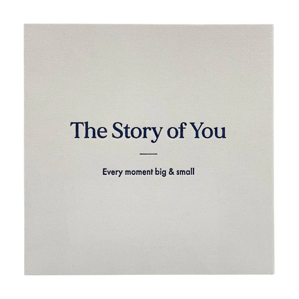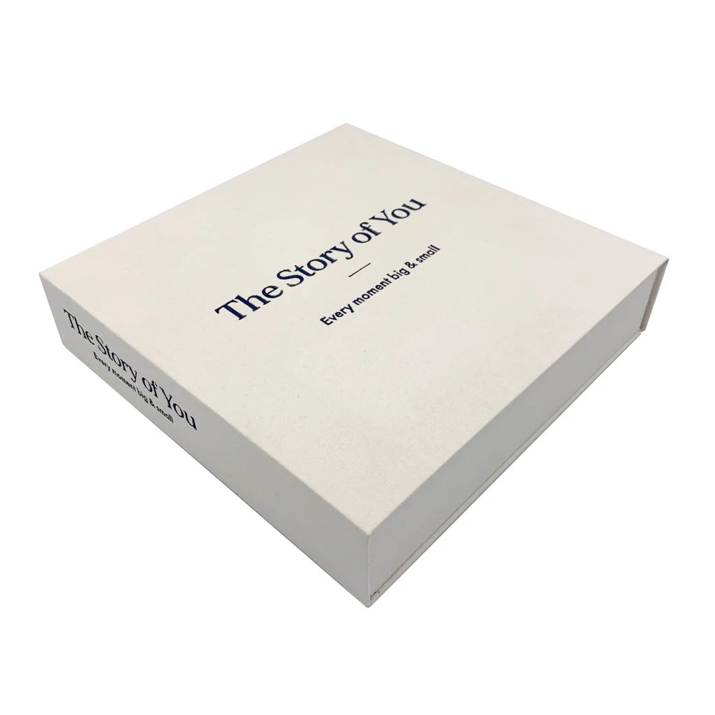 This modern clamshell box photo album comes presented in an archival quality, fine linen fabric which is lightly textured giving an understated elegant feelThe words "The Story of You" and "Every moment big & small" printed on the cover and the spine are delicately embossed with a black foil.