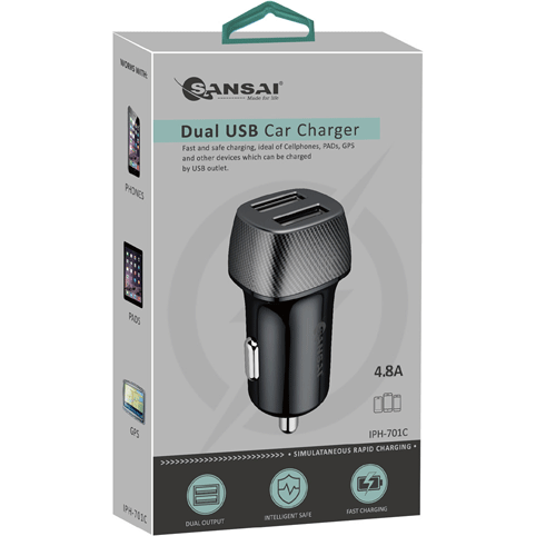 Totally output up to 4.8A (Max). Quickly charges the smartphones tablets, GPS and other devices.