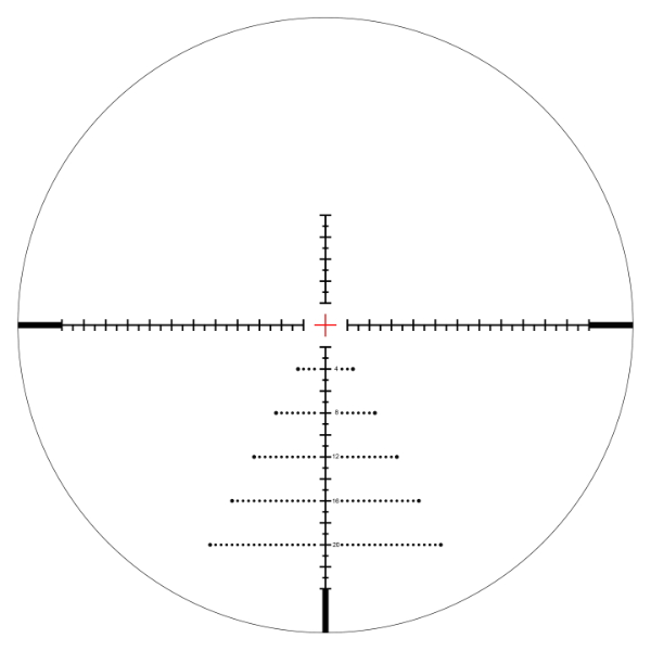 The red dot centre of the reticle has 6 illumination settings so you can adjust the brightness to suit your environment.