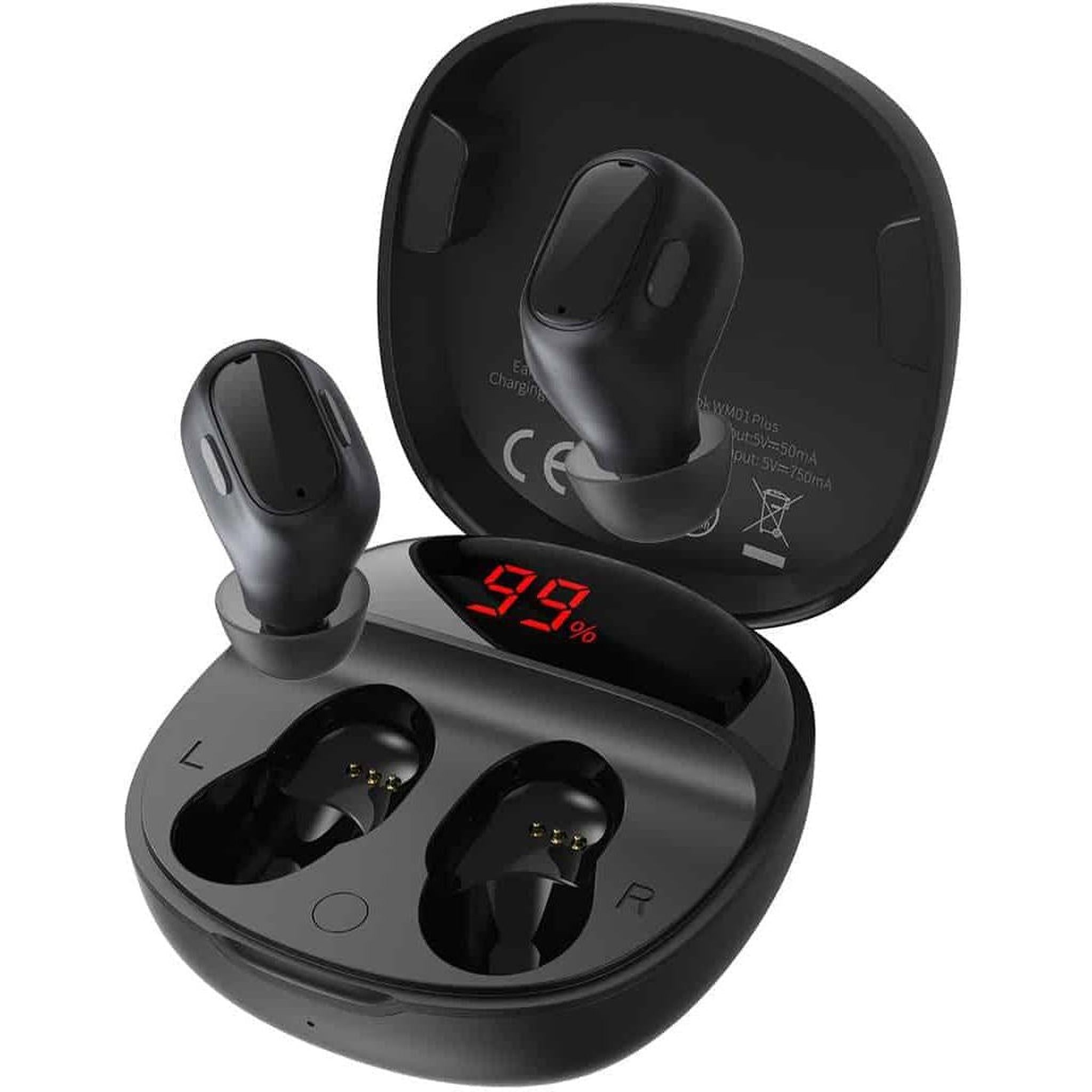 Baseus True Wireless Ear Buds WM01 Plus are compatible with all bluetooth devices with Android, Apple or Windows. They also support voice assistants such as Siri or Google Assistant. Extremely small and lightweight wireless headphones. The charging case is compact in size, so it is very easy to carry, there will be room for it in every backpack or purse. Now thanks to the display you can see how long the headphones will play. The headphones pair with each other within seconds after removing them from the charging case. Smoothly switch between single and double mode without the need for re - pairing. High quality technology The use of the latest technology enables a double connection of the left and right handset, providing a smoother wireless connection. The design of the headphones allows achieving clear sound, with strong bass and very good sound reduction. Material: ABS Colour: Black Version: V5.0 Communication distance: 10 m Standby time: 300 hours Music time: 5 hours (70% of the volume) Music listening duration with the charging box: 50 hours Battery capacity: 40mAh/0.148Wh (earphones) 800mAh/1.11Wh(charging box) Earphone rated input: DC5V⎓50mA Earphone rated consumption current : 8mA Charging box rated input: DC5V⎓300mA Charging box rated consumption current : 96mA Charging time: 2 hours Frequency response range: 20Hz-20KHz Charge interface: Type-C Suitable for: Compatible with all wireless devices