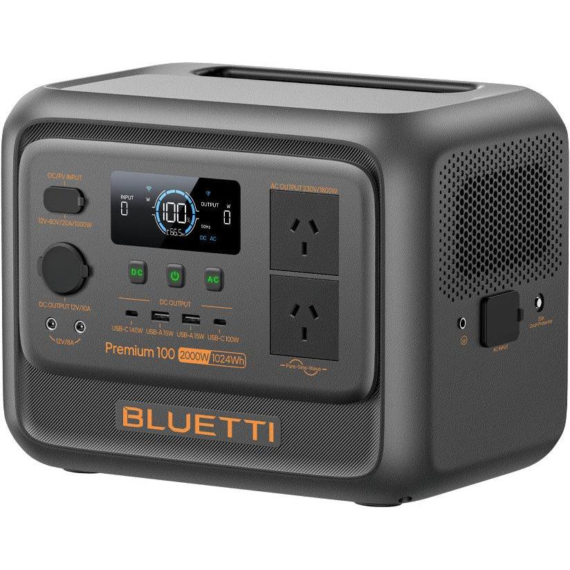 What choose Bluetti Premium 100 V2 1 Device, 9 Ports: With 9 versatile ports and a continuous 1,800w output, the Premium 100 V2 powers nearly all your essentials. Activate the Power Lifting Mode via the Bluetti app, it can handle up to 2,700W pure resistive devices like oven kettles or even wilders. Featuring groundbreaking HyperVolt technology, you get an industry-leading 3,600w surge Hypervolt technology, you get an industry-leading 3,600W surge power – enough to start energy-intensive appliances effortlessly.