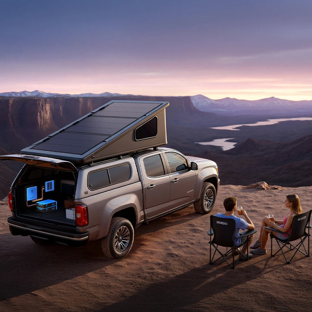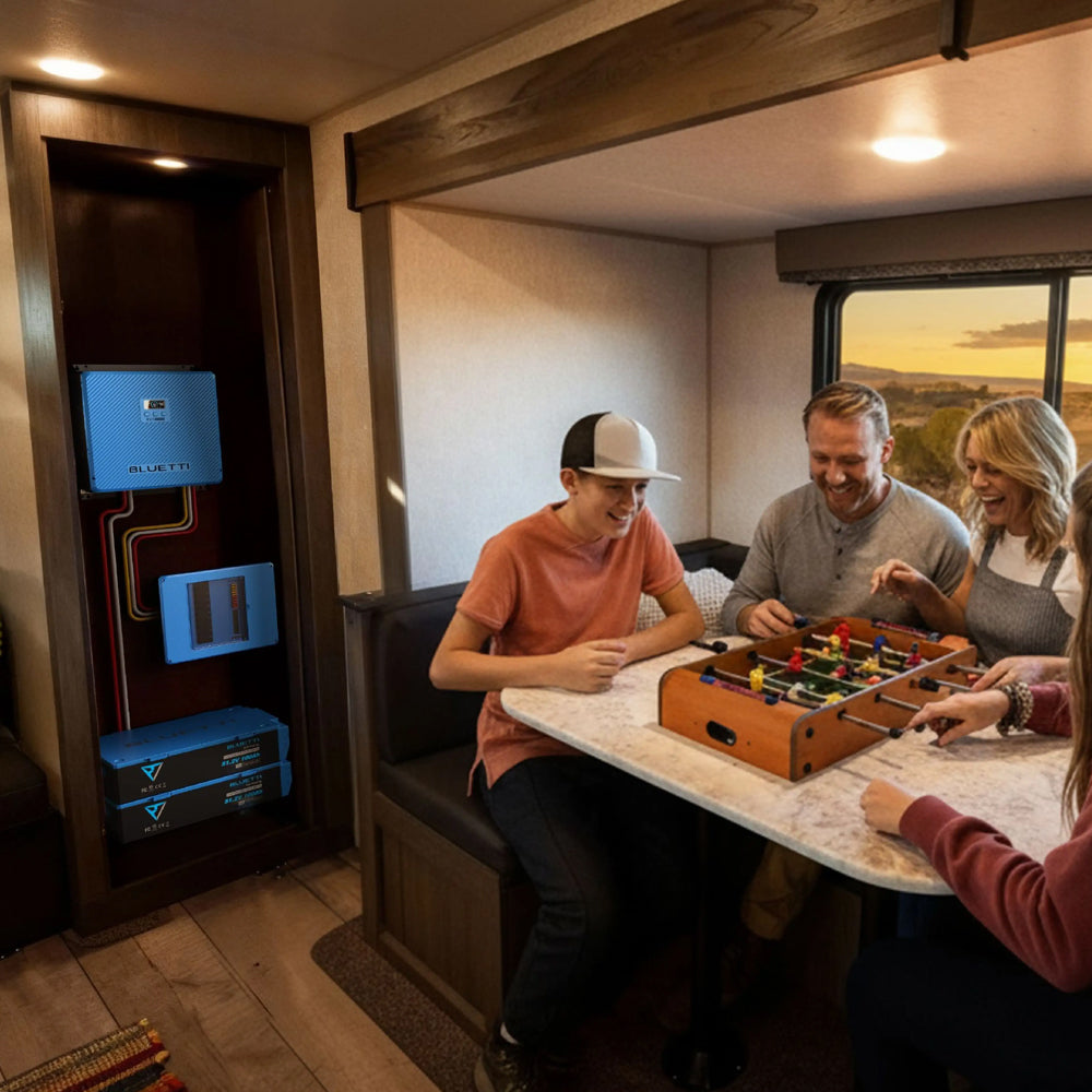 • No More "One-at-a-Time": With 5,000W, run your A/C, microwave, coffee maker, and more all at once. • 10+ Years of Reliable Power: Advanced LiFePO4 battery with 6,000+ cycles, built for the long road ahead. • Charge Anywhere: Up to 1,800 W solar, 1,200 W from your vehicle's alternator, or a fast 5,000 W from shore power. Never run out of juice. • Easy Setup for All: Plug-and-play design that's easy for everyone, even first-time RVers. • Generator-Free Peace: No noise, fumes, or maintenance—just quiet, natural surroundings. • Travel with Confidence: UL-certified and IP65 water-resistant, designed to tackle road bumps and spills with ease. • Easy Control in Your Hands: Monitor and manage via Epad or the BLUETTI app.