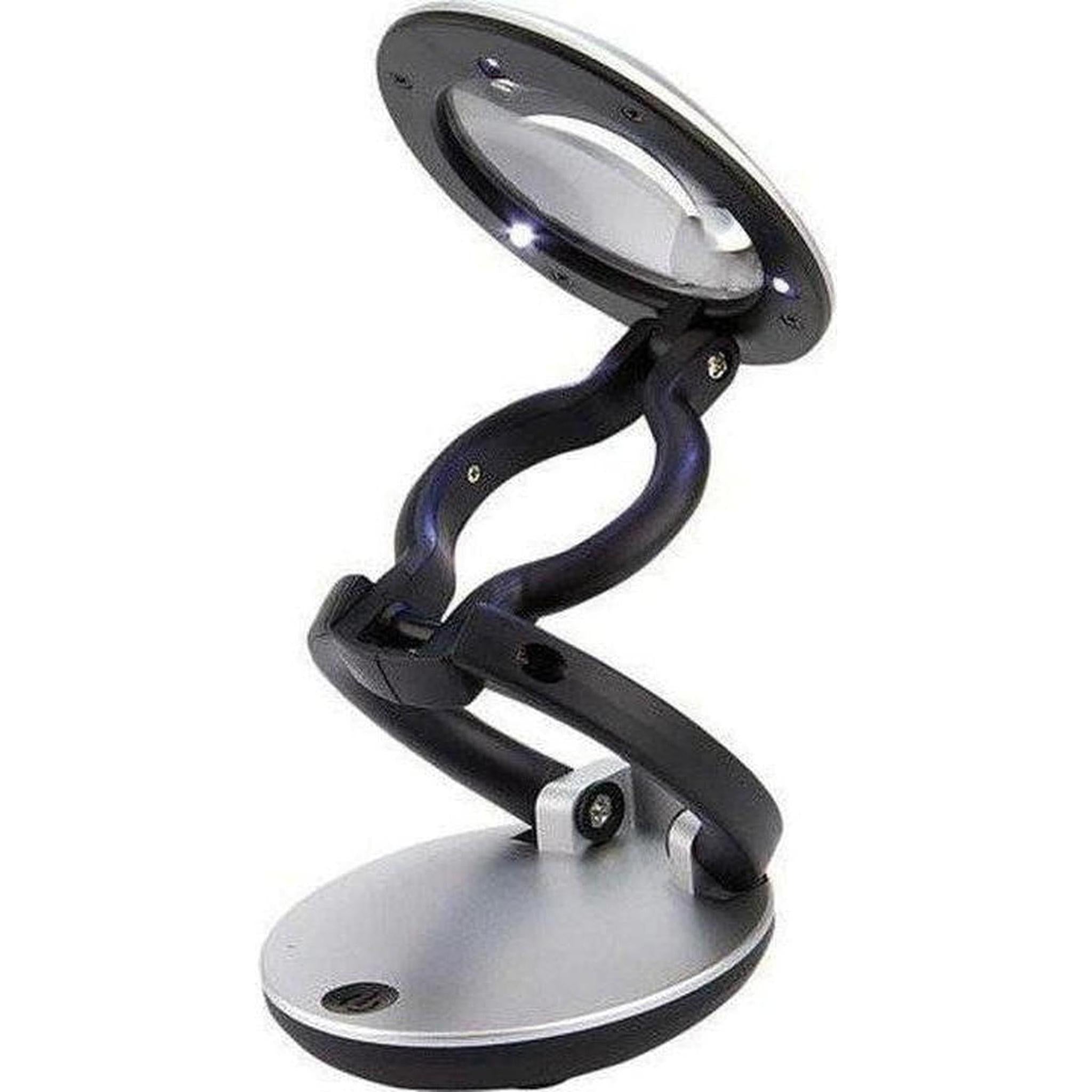 The DeskBrite Mini 3x LED Magnifier & Desk Lamp from Carson features a 2.25" diameter acrylic lens with a 3x magnification for more clearly seeing your subject matter. It also features three LED lights to further enhance your view. It is compact with the ability to collapse and has anextendibleneck for when you need a little reach. Also, there is a flip cover for the lens for protection during storage. It runs of 3 AA batteries. (not included)