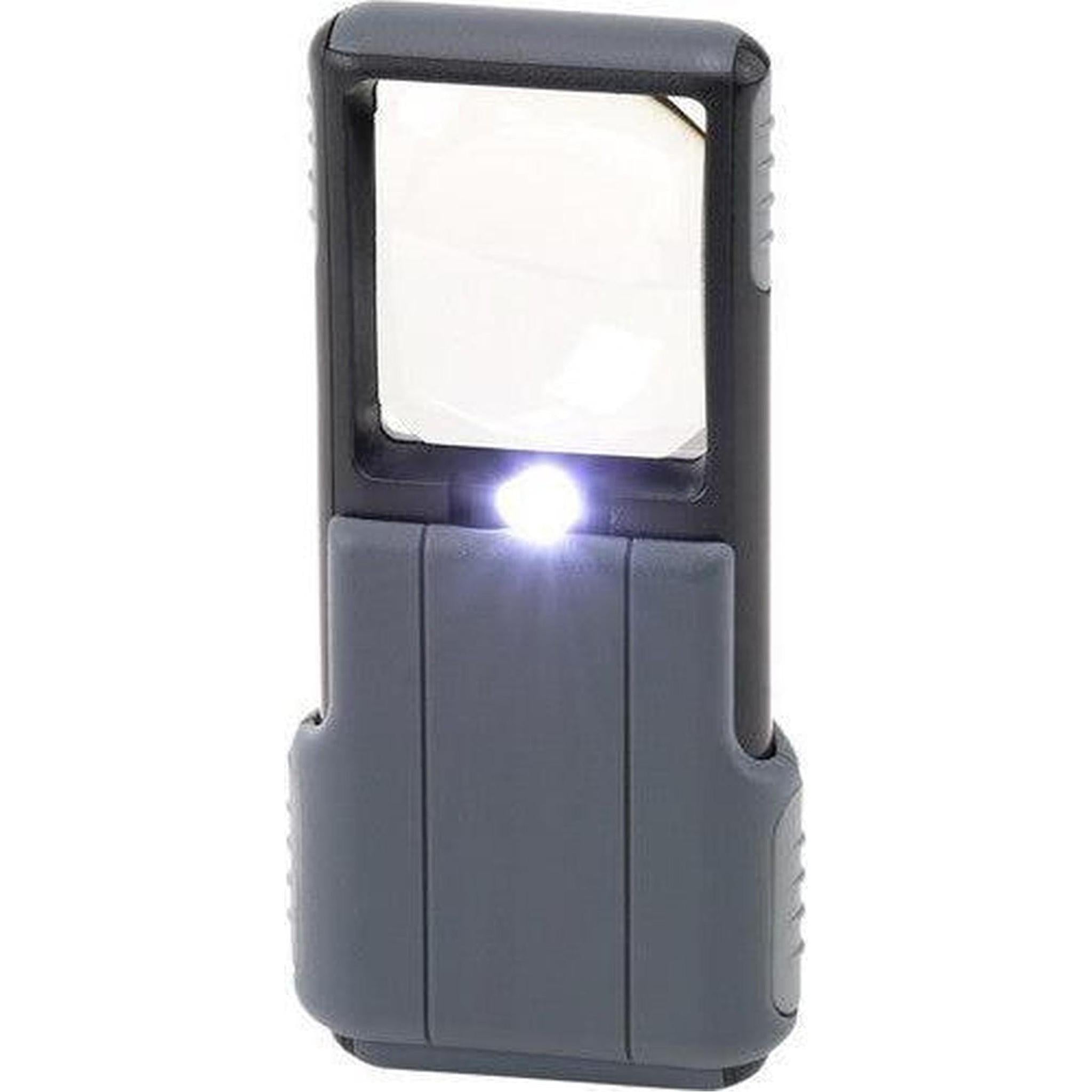 The Carson MiniBrite pocket magnifier is a compact 5x power aspheric slide-out magnifier with a protective plastic sleeve. The magnifier comes equipped with a built-in bright LED light. The sharp, distortion-free view is thanks to its crystal-clear acrylic aspheric lens. The MiniBrite is a handy tool for those with low vision and is excellent for reading everyday items.