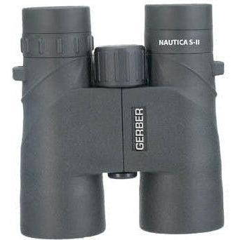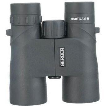 Gerber Nautica S-ii W/Proof 8X42 BAK4 Binoculars The Gerber 8x42 Waterproof Binoculars are ideal for out on the water. With 42mm objective lens, in low light conditions such as dawn and dusk, image brightness remains stable. Being IPX5 waterproof, the BMC coated lenses will give a crystal clear sharp view! With a tough full rubber housing protecting from shock, and an all-weather grip, the Gerber 8x42 waterproof binoculars are easy to hold, ergonomically designed and comfortable. The Gerber 8x42 is the perfect binocular choice for your next outdoor trip or nautical adventure! Waterproof Nitrogen Filled Neck Strap Carry Bag