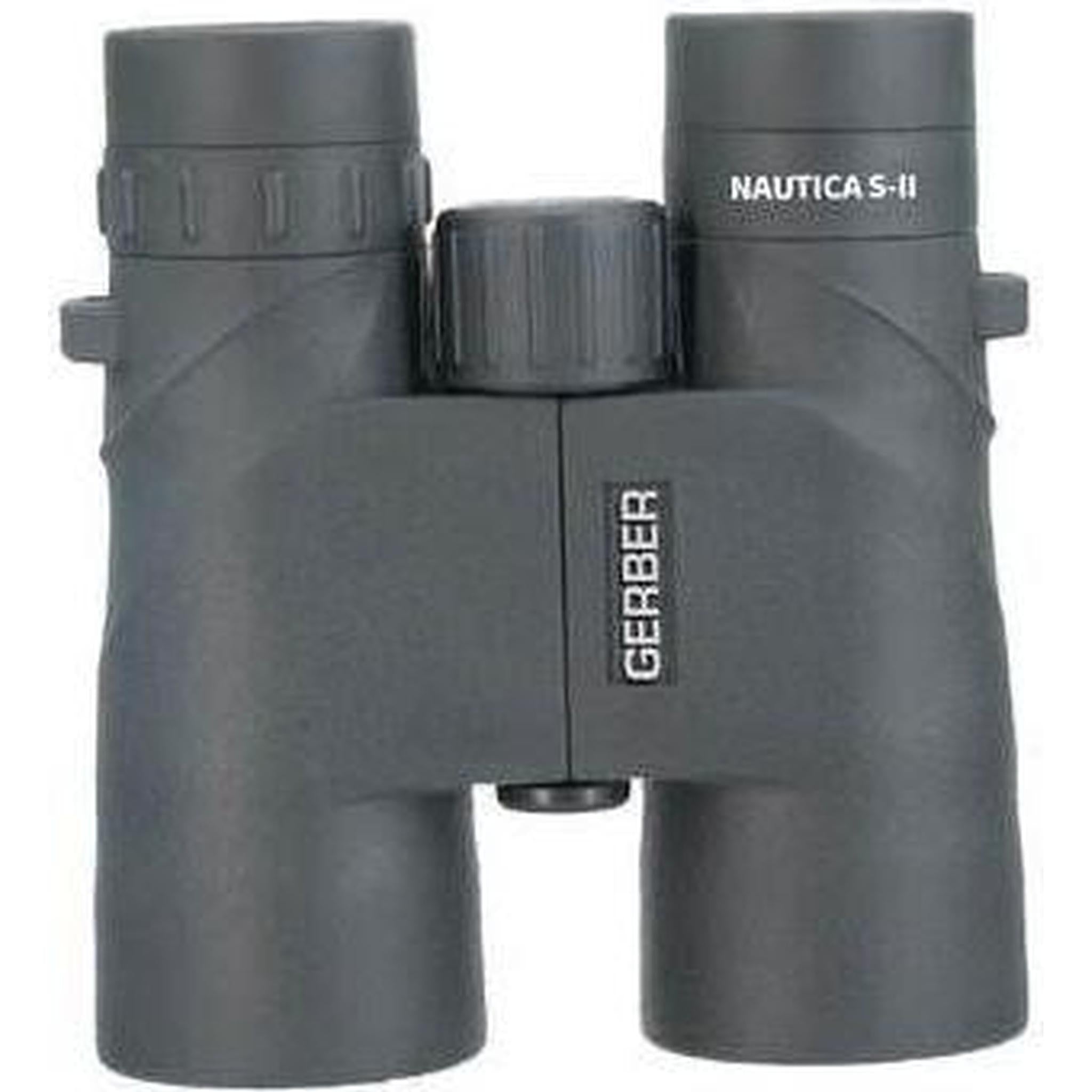 Gerber Nautica S-ii 10x42 Waterproof Binoculars The Gerber 10x42 Waterproof Binoculars are ideal for out on the water. With 42mm objective lens, in low light conditions such as dawn and dusk, image brightness remains stable. Being IPX5 waterproof, the BMC coated lenses will give a crystal clear sharp view! With a tough full rubber housing protecting from shock, and an all-weather grip, the Gerber 10x42 waterproof binoculars are easy to hold, ergonomically designed and comfortable. The Gerber 10x42 is the perfect binocular choice for your next outdoor trip or nautical adventure! Waterproof Nitrogen Filled Neck Strap Carry Bag