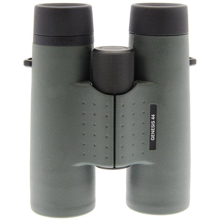 All Genesis series binoculars feature a lightweight, yet extremely rugged magnesium frame that is the foundation of the waterproof and fogproof body. Optically, the unit can focus down to an amazing 5.5' and the boost in objective lens size from a more common 42mm to 44mm provides a clear view that is 10% brighter. Internal focusing aids in keeping the overall operating size from becoming unwieldy.