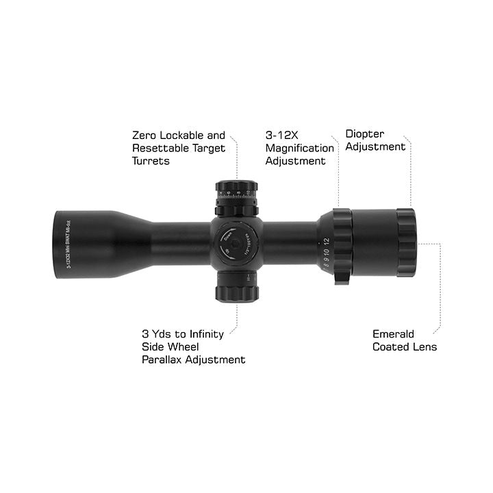 Side Wheel Adjustable Turret for Parallax Adjustment from 3 Yards to Infinity