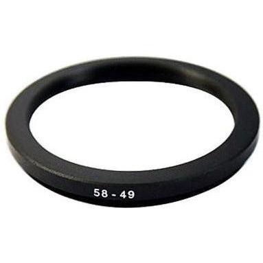The 58-49mm Step down ring allows accessories with a thread of 49mm to be attached to a camera with a thread of 58mm.