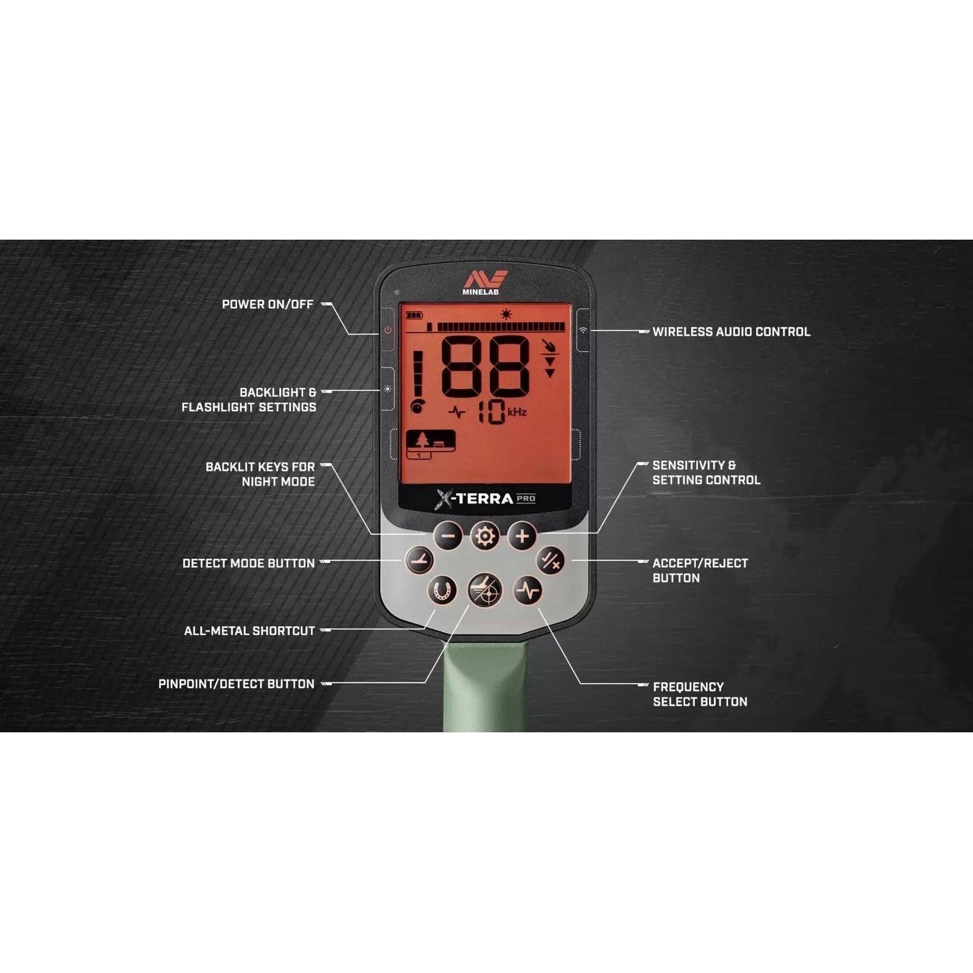 Stand out from the crowd and step-up your detecting game with the all-new X-TERRA PRO treasure detector by Minelab. Out of the box, simply set your detector to match your terrain with Park, Field and Beach Search Modes and leave all the hard work up to the detector to start unearthing the treasure you seek. As your skills improve, X-TERRA PRO offers room to grow with PRO-SWITCH (Switchable Frequency Technology), so you can set it to 5, 8, 10, or 15 kHz at the press of a button and take control of any environment or situation that comes your way. Fully IP68 waterproof to 5 m (16 ft) and loaded with features like 5-audio modes, control pod flashlight, and handgrip vibration you’ll be detecting like a pro from the moment you start swinging.