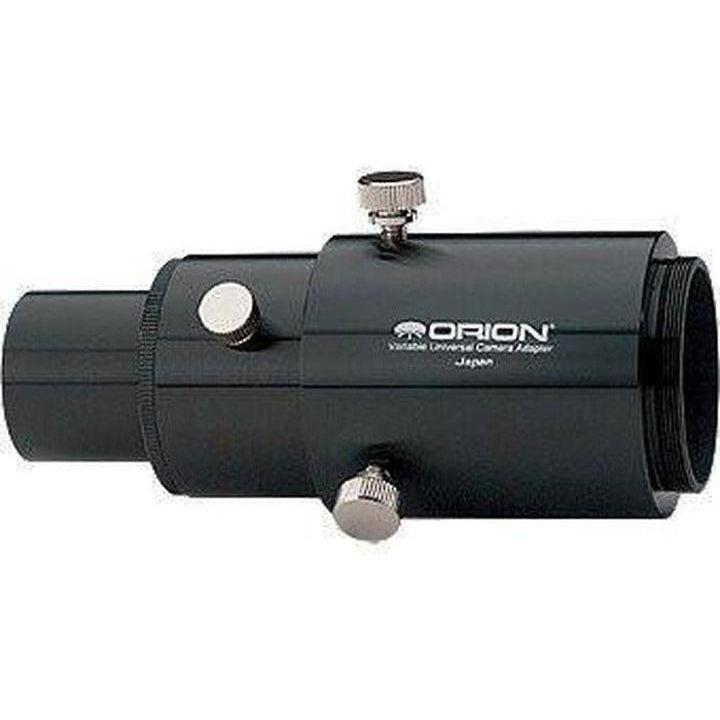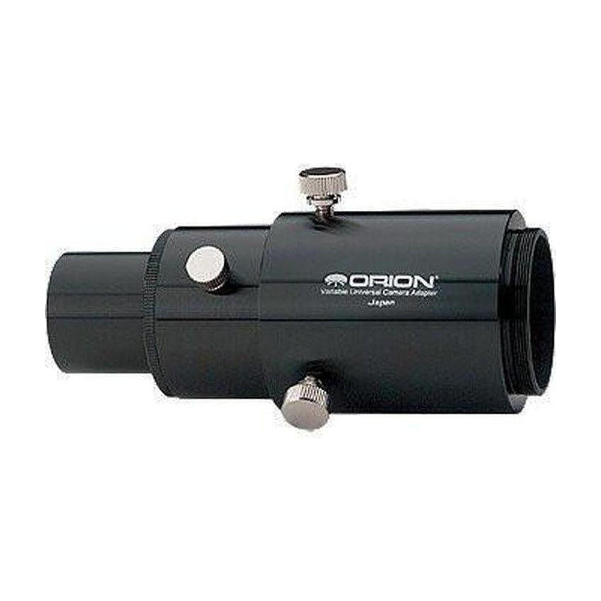The Orion 1.25" Variable Universal Camera Adapters allow attachment of a camera body to reflector and refractor telescopes for either prime-focus or telescope eyepiece-projection photography (hence the term "universal"). The adapter's 1.25" nosepiece slides into the telescope's eyepiece holder just like an eyepiece.