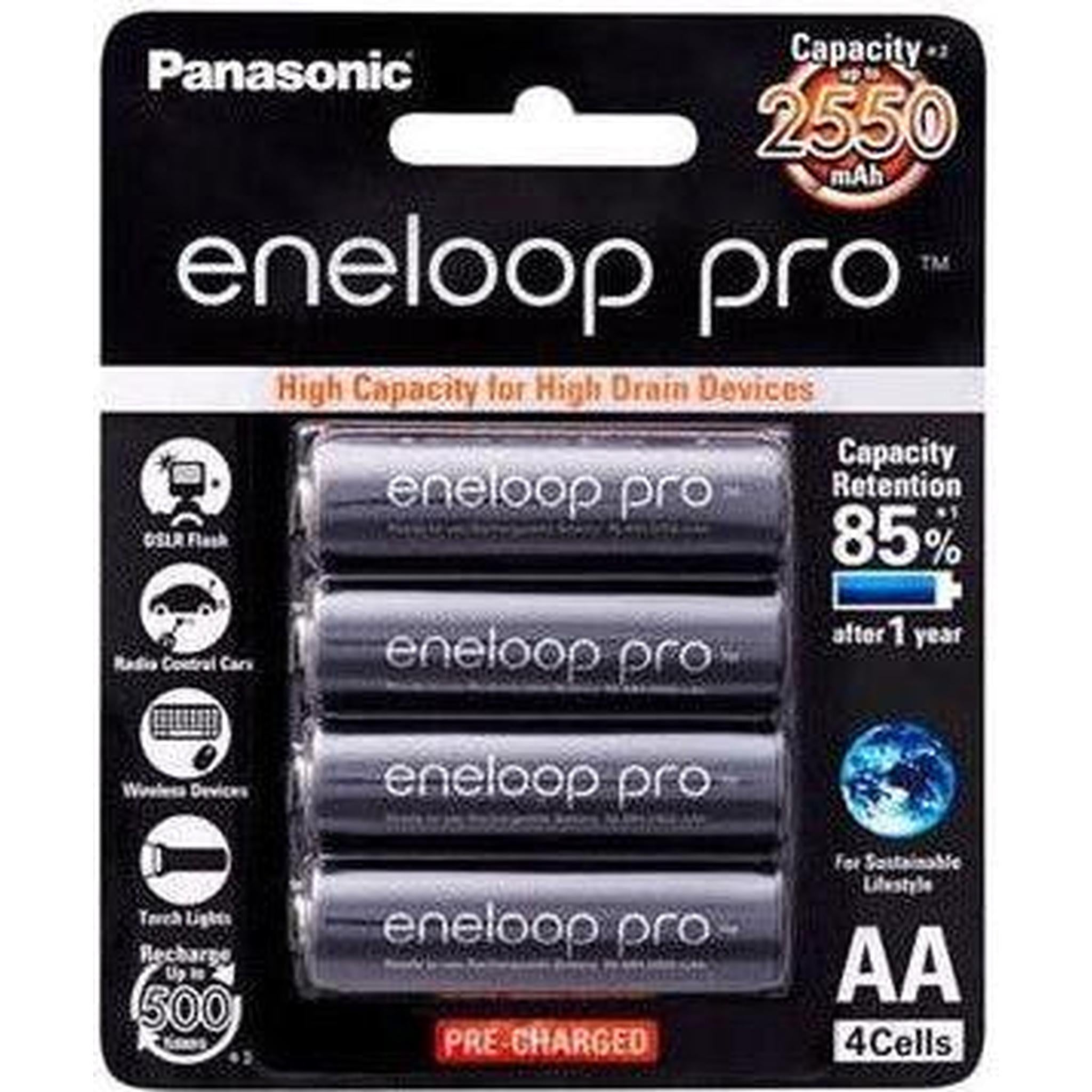 Pre-charged. Rechargeable up to 500 times. Holds 85% charge after 1 year. Works in extreme temperatures, down to -20c.