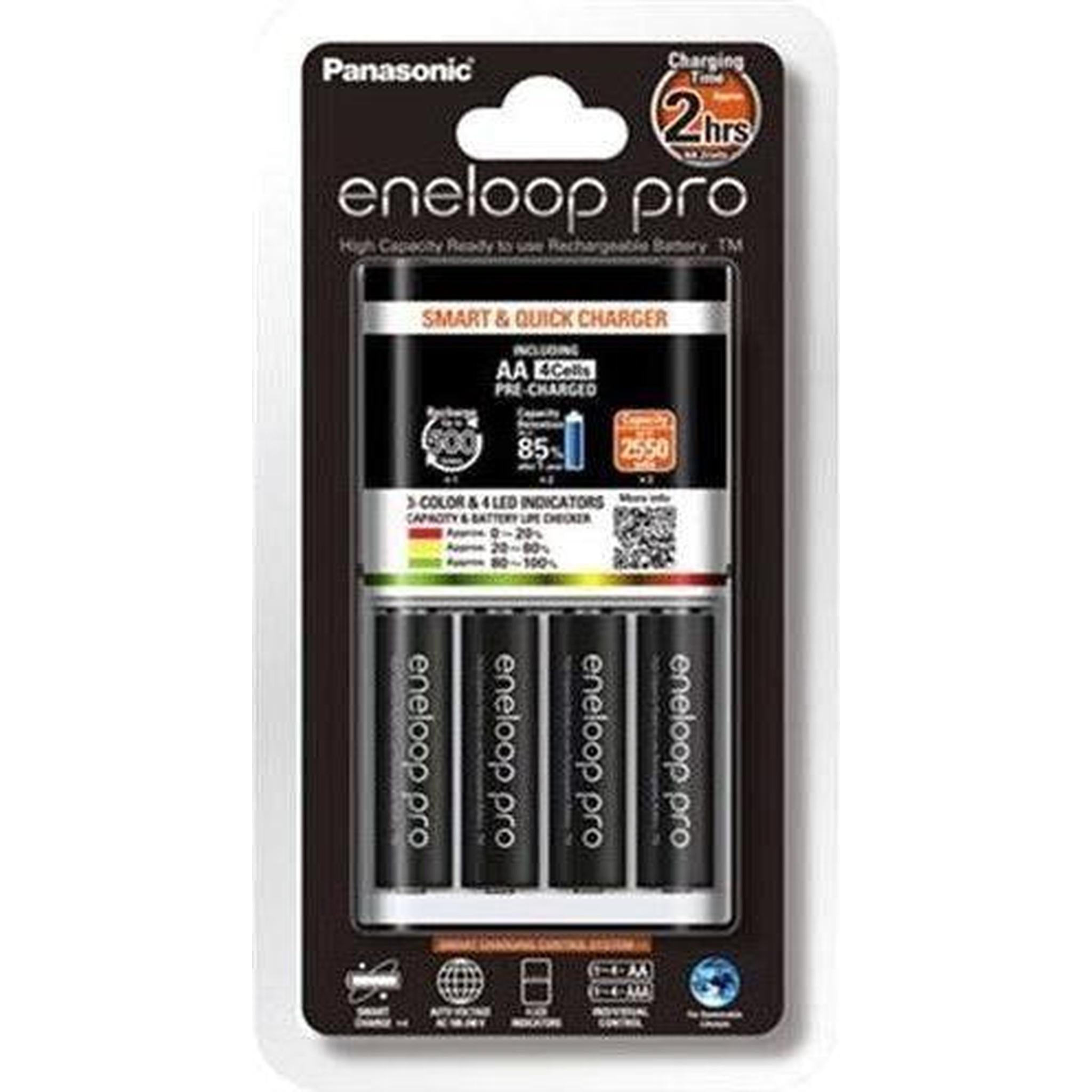 3-hour quick charge designed for charging Eneloop Batteries. Comes with 4xAA Eneloop Pro batteries. Charges both AA and AAA size.