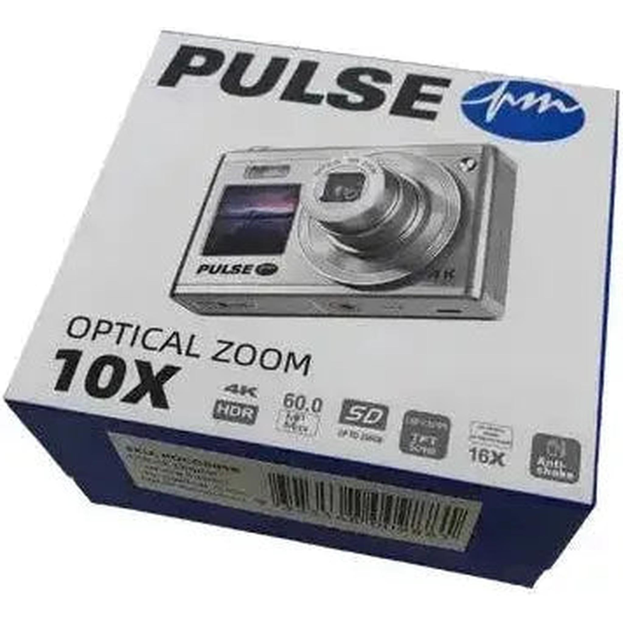 The Pulse 10X Optical Zoom Camera is a portable and easy-to-use digital compact camera, perfect for framing your everyday life in fresh and exciting ways. With its 10X optical zoom lens, this camera allows you to play with your framing, and capture a wide range of subjects, near and far. This camera includes a slim design, so it will fit in your jacket pocket, as well as your handbag or backpack, while its 8MP image sensor is capable of high-quality still images, as well as 4K resolution videos. 8MP Image Sensor 10x Optical Zoom Lens 4K Video Recording at 30fps Portable & Lightweight Build 2.8-inch LCD Screen (Rear) + 1.54-inch LCD Screen (Front)
