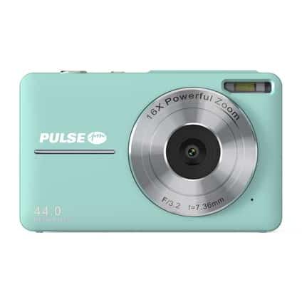 This Pulse digital camera is a lightweight, easy-to-use Digital Compact camera that is perfect for beginner users, and even kids. This camera can produce great 44MP (interpolated from 5MP) images and Full HD videos, which is ideal for starting your very first vlog. Zooming in and out to frame your shots is easy, using the W/T buttons, while 16x digital zoom is available for versatility. 20 filter effects are available for adding detail and character to your work, while the built-in LED light allows the camera to be used freely, day and night. 16X Digital Zoom Full HD Video Recording Lithium Rechargeable Battery Built-In LED Light Various Filter Effects This Pulse camera is a lightweight, easy-to-use Digital Compact camera that is perfect for beginner users, and even kids. This camera can produce great 44MP (interpolated from 5MP) images and Full HD videos, which is ideal for starting your very first vlog. Zooming in and out to frame your shots is easy, using the W/T buttons, while 16x digital zoom is available for versatility. 20 filter effects are available for adding detail and character to your work, while the built-in LED light allows the camera to be used freely, day and night. The Pulse digital camera comes with a USB cable included, which allows the camera to be used as a webcam, simply by plugging it in. A built-in microphone is included, as is the anti-shake feature, which keeps your photos and videos smooth and free from blur. It is easy to frame from various angles, using the 2.4-inch LCD screen of this compact camera, while features such as a self-timer, single and continuous shot modes allow you to be creative and focus your lens on various subjects. Includes Lithium Battery (700 mAh) Actual Image resolution: 5MP Exposure Compensation: +4/3 Video Pause Feature - Saves time on editing