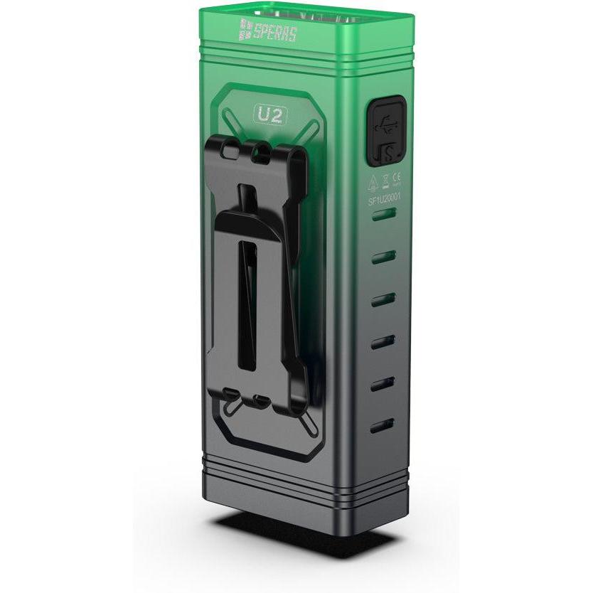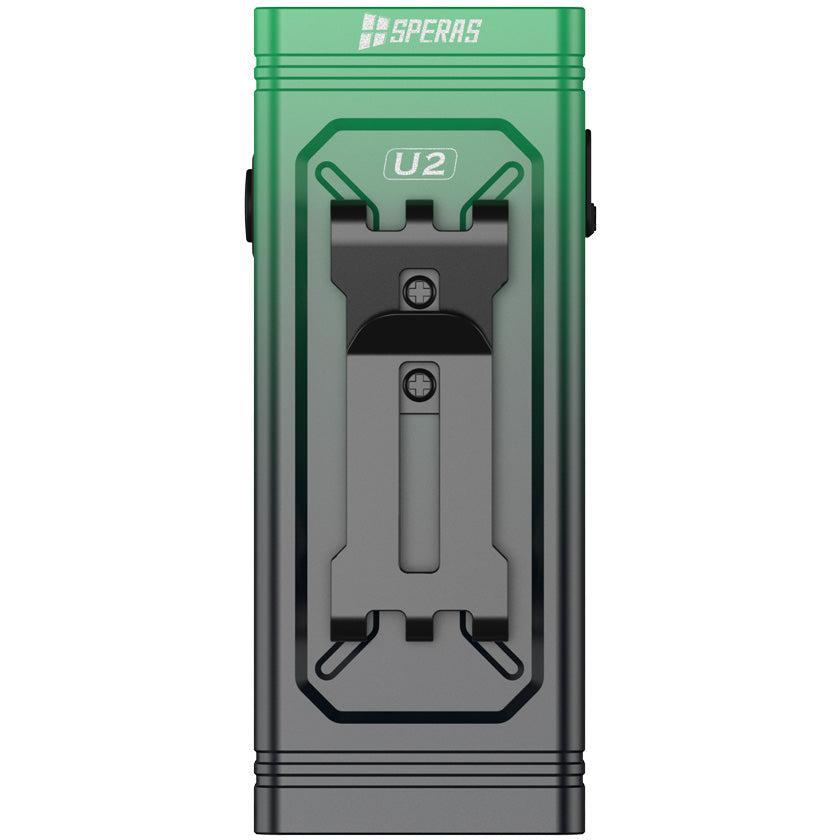 The SPERAS U2 is a multifunctional flashlight that delivers a powerful 5000lm max output and reaches a 340m beam distance from its 3 Luminus SST40 LEDs and advanced driver. The rectangle shape provides a functional, modern and sturdy look and also enhances heat dissipation. USB-C 5V/3A ensures fast charging in under 2.25 hours for a full charge. The 2 built-in INR 3200mAh 18650 batteries provide a runtime in excess of 150 hours. With the functional bike mount, it is easy to attach or remove the light to your bicycle. An added feature is the wireless USB-C remote pressure switch that can free up your hands. The U2 is an ideal flashlight for camping, hiking, outdoor and everyday use.